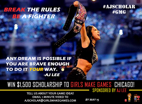 AJ Lee is trying to encourage more girls to get into gaming and she’s recently partnered with Girls Make Games. They’ve teamed up to offer a scholarship to someone who is hoping to attend one of their programs in Chicago. You can find out more about it on AJ’s website or by reading below.