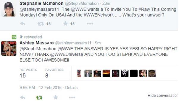 Someone decided to pull a fast one with a fake Stephanie McMahon Twitter account and invited Ashley Massaro to Raw. She fell for it at first but eventually figured it out and deleted the tweets saying:
