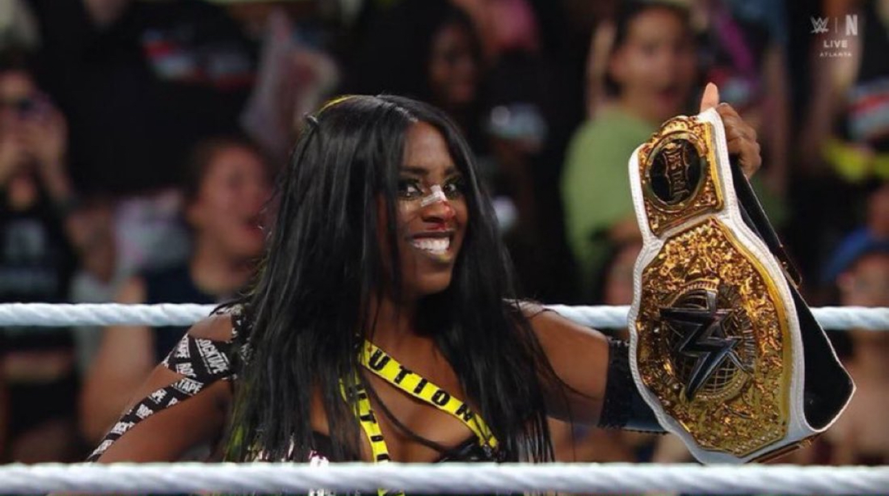 As soon as Naomi entered the match she hit Iyo Sky with the Money in the Bank briefcase then threw Rhea Ripley into the ring post. Naomi then connected with a split legged moonsault on Iyo Sky and pinned her to become the new WWE Women’s World Champion.