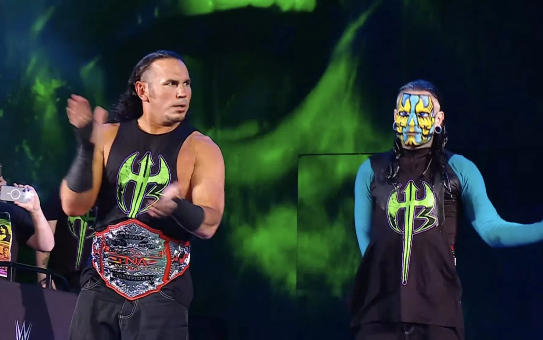 It’s been years since The Hardys have competed inside a WWE ring, but the TNA Wrestling Tag Team Champions wrestled on NXT for the first time ever this week when they faced off against Myles Borne & Tavion Heights.