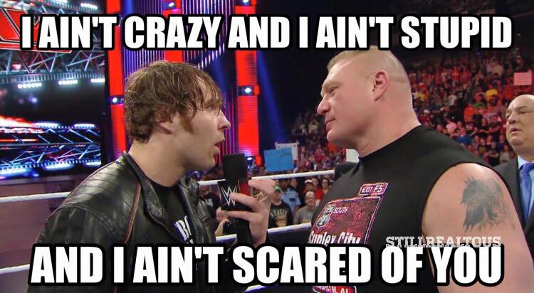 Raw opened up with Paul Heyman and Brock Lesnar making their way to the ring. Heyman is cutting a promo and he mentions Dean Ambrose. Ambrose comes out, looks Brock Lesnar in the eye and tells him he’s not afraid of him. He tells him he wants the title. Ambrose then just says he wanted to see Brock Lesnar face to face then he walks away. Heyman and Lesnar look on and smile.
