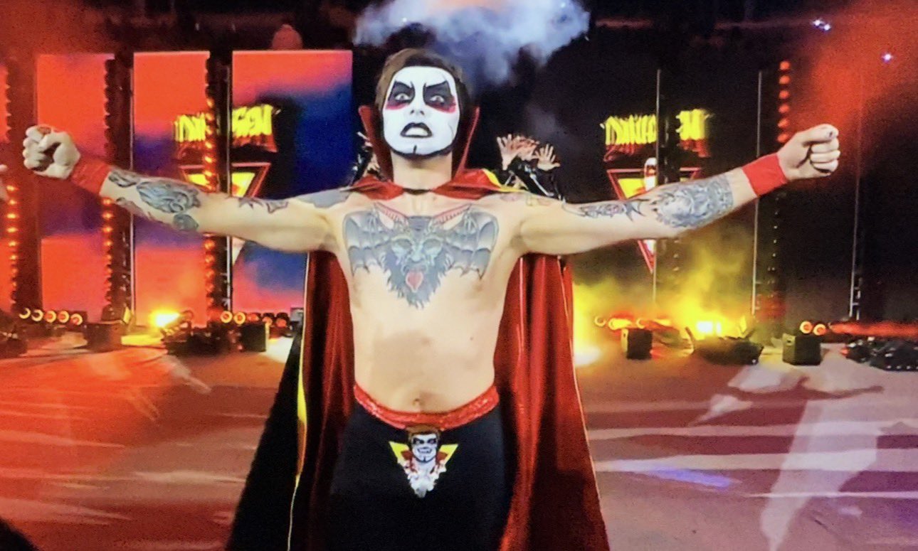 Before the main event the crate was wheeled out to the stage and Adam Pearce teamed up with Nick Aldis to open it up. After they opened it a coffin was revealed and a group of dancers wearing Danhausen makeup walked out followed by Danhausen himself.