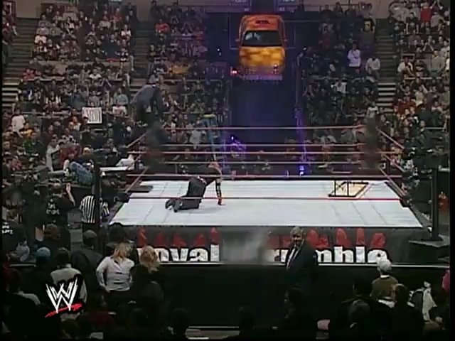 At the Royal Rumble 2000 they went with the less is more approach by making the set look like an alley way with a New York City taxi cab over the entry way. The entry way and taxi cab of course proved useful in the classic tag team tables match between The Hardy Boyz and The Dudley Boyz.